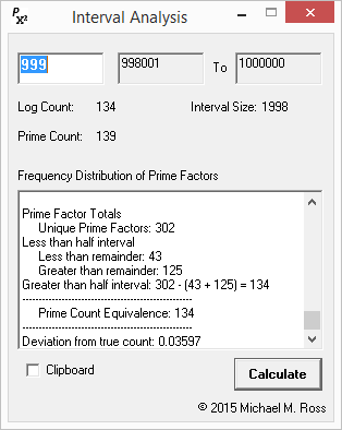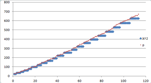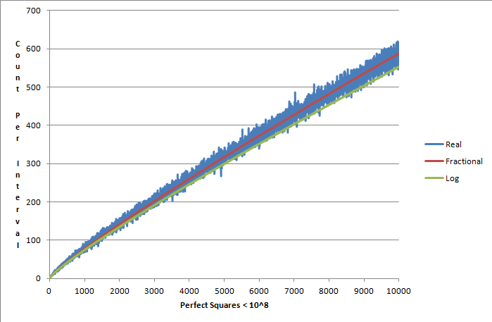 Unlike the "asymptotic law of the distribution of prime numbers", the curve that I have graphed using the method of fractional elimination of prime factors (see how the formula works) is generated by a calculated value for every quadratic interval. The importance of this is that, unlike the asymptotic curve, this curve is the product of a discrete function applied to every perfect square interval, and it shows the growth in the prime count is due to the rules of arithmetic that apply to every interval (independently of every other interval).