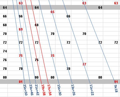 Example: If 20 is the span, then 11, 13, 17, and 19 are the four primes greater than half. The span divided by 2 and squared gives the first square - (20 / 2)2 = 100 - for which this span is the quadratic interval. There are five primes between 100 and 121.