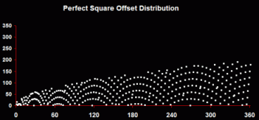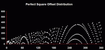 Perfect Square Offset Distribution - The third kind of pattern - strictly, this is not tessellation - is created by looking at the differences between each Q and its immediately preceding perfect square.