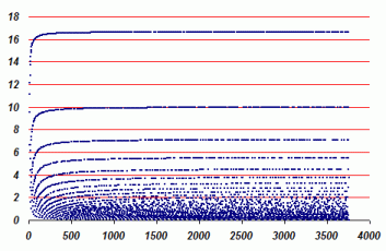 This value of (N/5.9)2 appears to be related to the growth of the Riemann zeta function (specifically, the Lindelof hypothesis, a value that approaches 1/6th) and to the Basel problem (Euler's method for approximating Pi using infinite series, as illustrated in ZetaTest).
